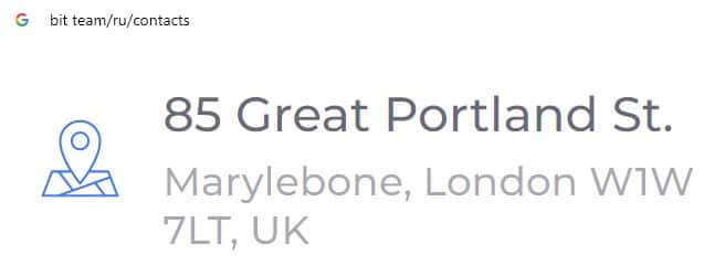 Сведения о месте регистрации Бит Тим фальшивы, так как большинство мошеннических проектов у себя на сайте указывают адрес в Лондоне для приманки очередного лоха.