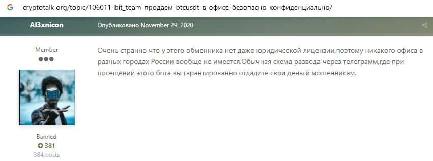 Отзывы о мошеннической организации Bit Team, ныне присутствующие в сети
