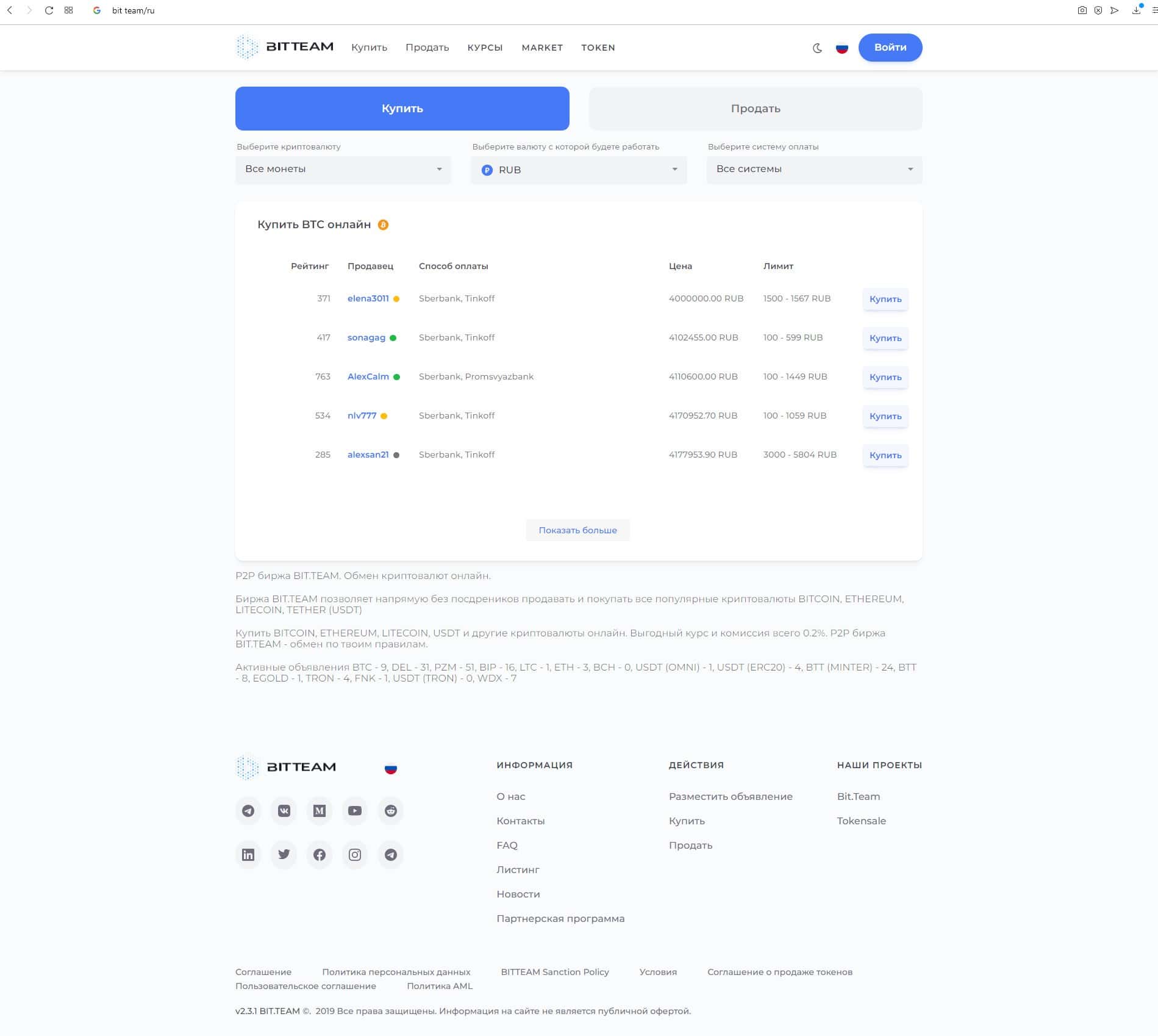 bit team - официальный интернет-сервис крипто-обменника Бит Тим