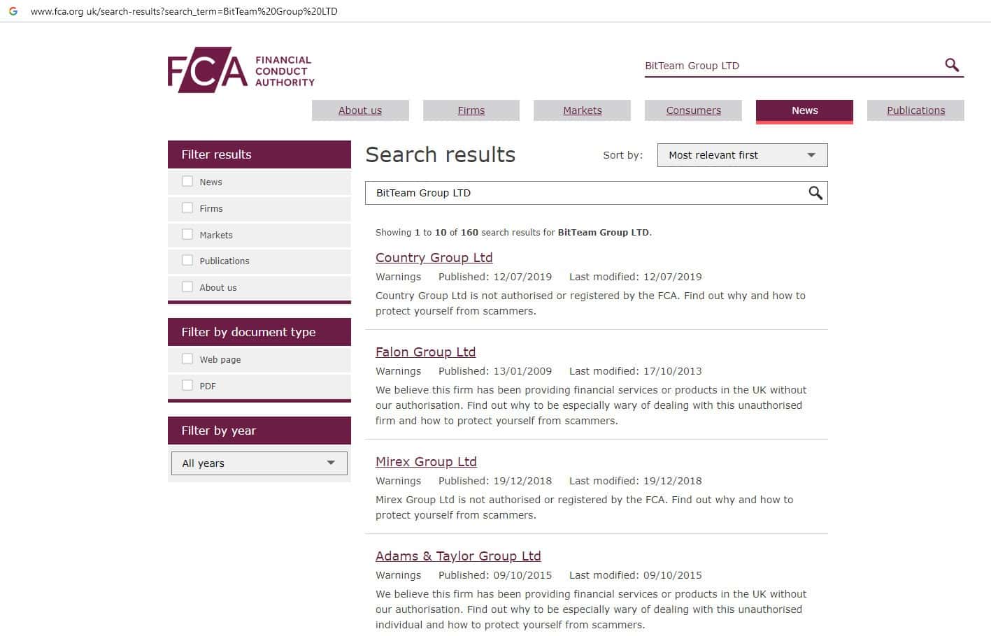 Нами было обнаружено то, что компания Bit Team не зарегистрирована на сайте финансового регулятора Великобритании и не имеет лицензии.