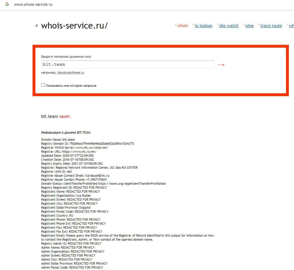 Проведя анализ данных по сайту шараги Бит Тим, не было обнаружено информации о владельце домена, что является еще одним признаком того, что имеем дело с лохотроном.