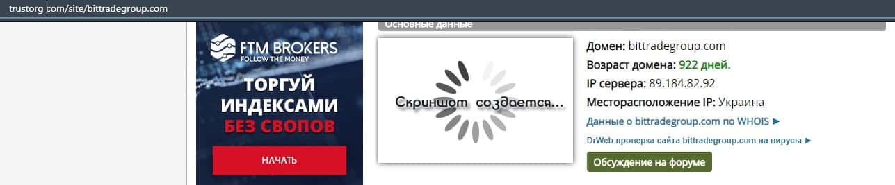 Если начать проверять сайт конторы "bittradegroup com" без точки, то найти информацию вас тоже не получится из-за того, что аферисты не популярны.