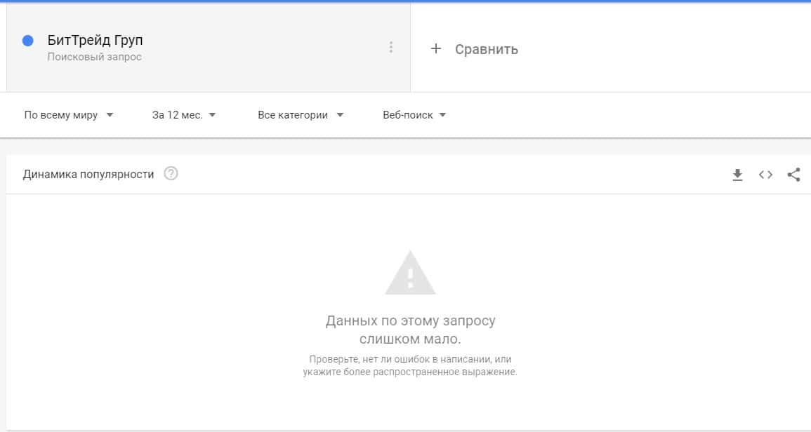 Что касается бренда "БитТрейд Груп" в такой вариации, то здесь также нечего сказать, так как они не набрали по Гугл Трендс никаких значений.
