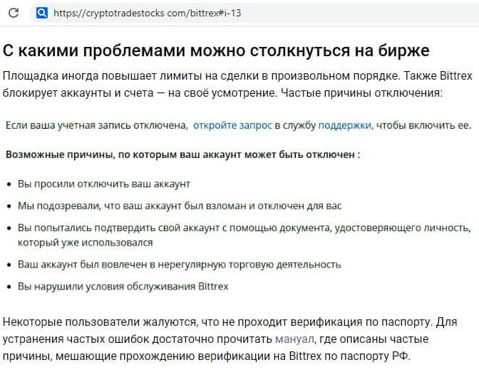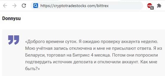 Трейдер в своем отзыве на сайте cryptotradestocks com сообщает, что мошенники из криптовалютной компании Bittrex отключили его учетную запись.