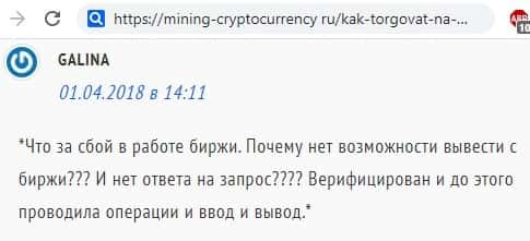 Клиент криптовалютной компании Бит Трекс в своем отзыве на mining-cryptocurrency ru удивляется, почему нет возможности вывести денежные средства с биржи.