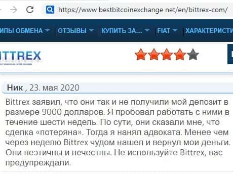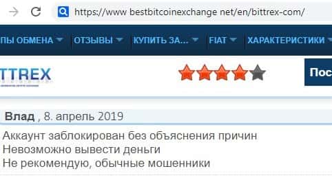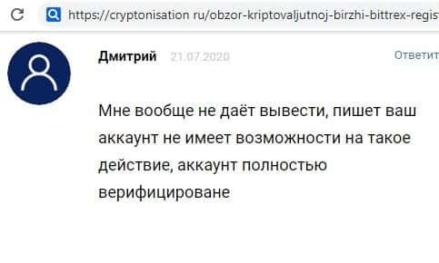 Клиент криптовалютной компании Bittrex в своем отзыве на сайте cryptonisation ru рассказывает, что мошенники из этой биржи не дают ему вывести свои деньги.