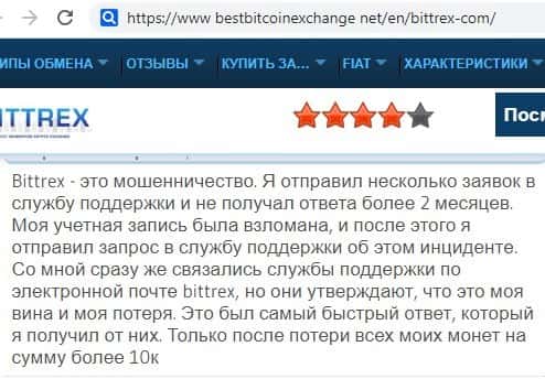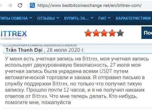 Трейдер жалуется на сайте bestbitcoinexchange net о том, что на криптобирже Bittrex у него была украдена учетная запись, а объяснений от службы поддержки он не получил.