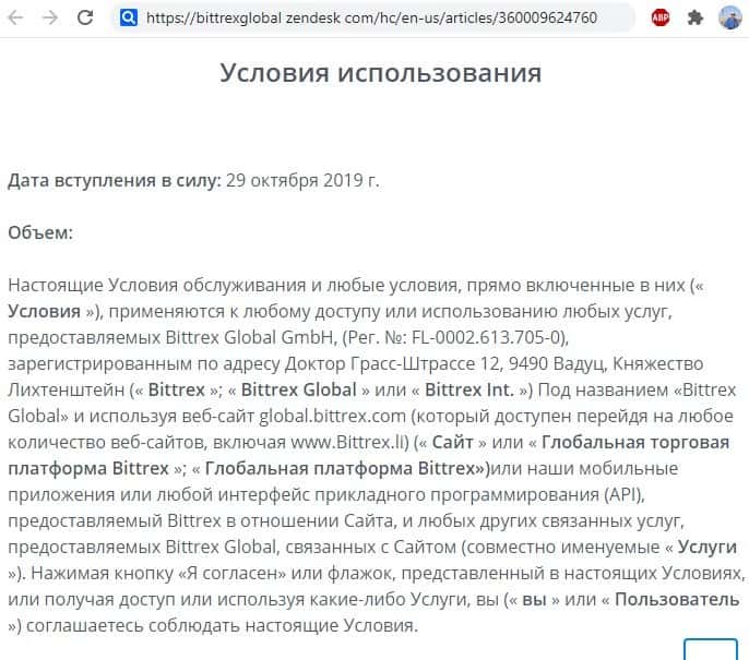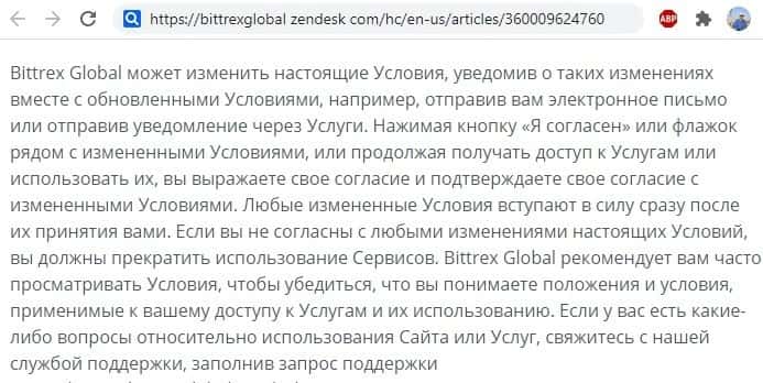 Компания Bittrex, согласно Условиям использования, наделяет себя исключительным правом в любой момент изменить эти самые Условия.