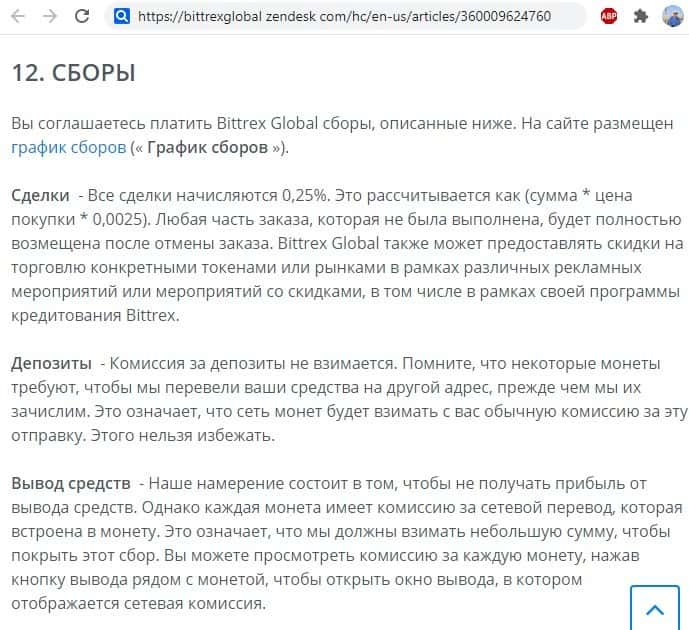 Криптовалютной компанией Бит Трекс установлены комиссионные сборы на торговые сделки и, косвенно, на депозиты и вывод клиентами денежных средств.