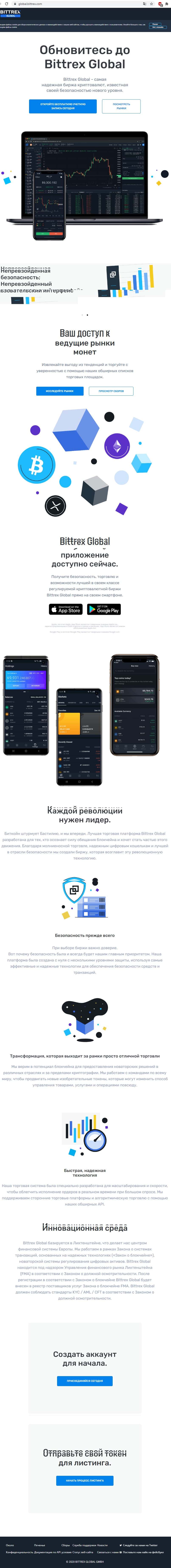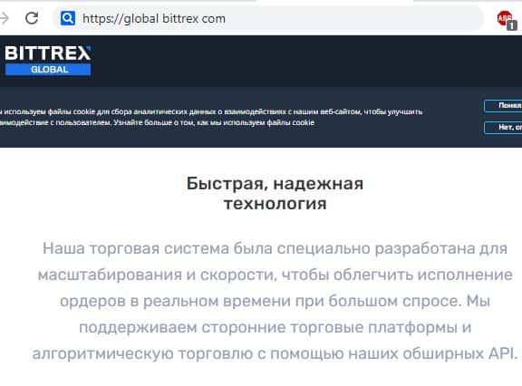 Официальный сайт брокерской компании Bittrex Com открывается на странице Bittrex Global, которая содержит мало полезной информации, кроме обычной рекламы на ней ничего путного нет.