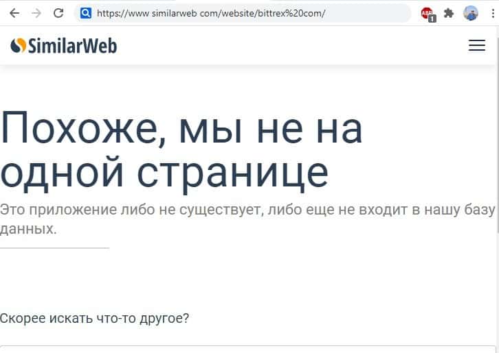 Аналитический сервис similarweb com, сообщает, что домен криптовалютной брокерской компании Bittrex Com не входит в его базу данных.