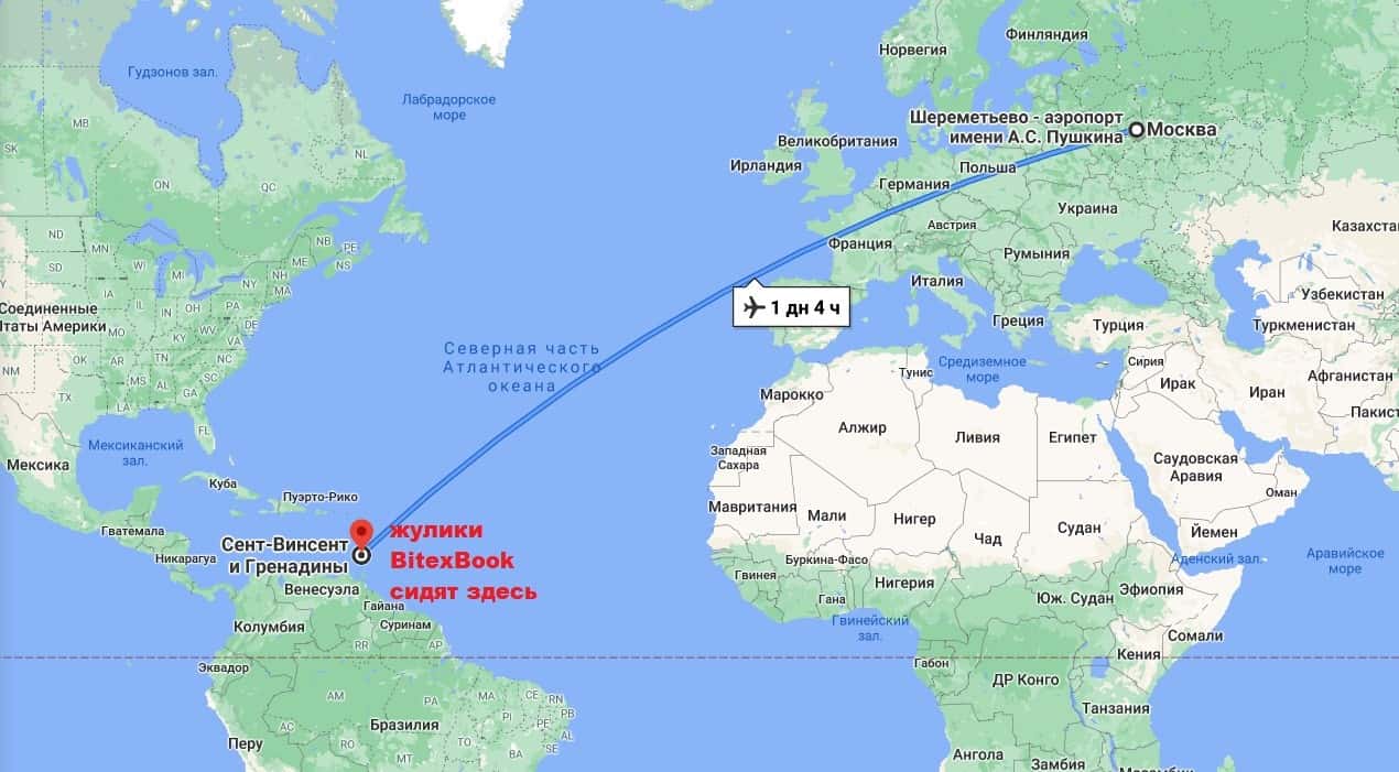 BitexBook указывает на сайте, что компания зарегистрирована на островах Сент-Винсент и Гренадины. Это известный офшор, где устраивают свои офисы жулики и аферисты.