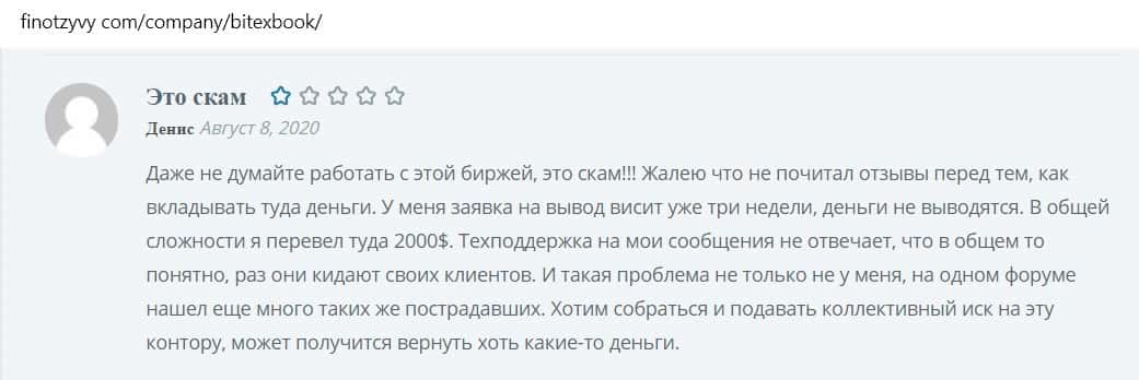 Отзывы клиентов о жуликах BitexBook