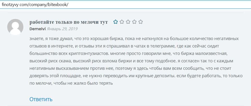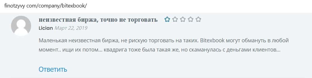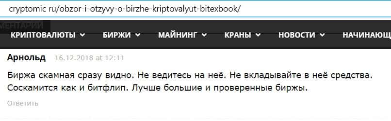 Обзоры на криптобиржу Битекс Бук, найденные в сети