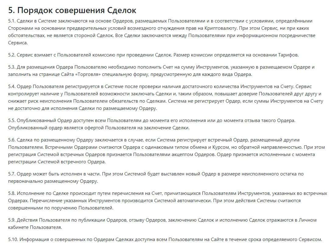 Прочитав пятый раздел клиентского соглашения брокера Битекс Бук, клиент может узнать о порядке совершения сделок на сайте BitexBook.