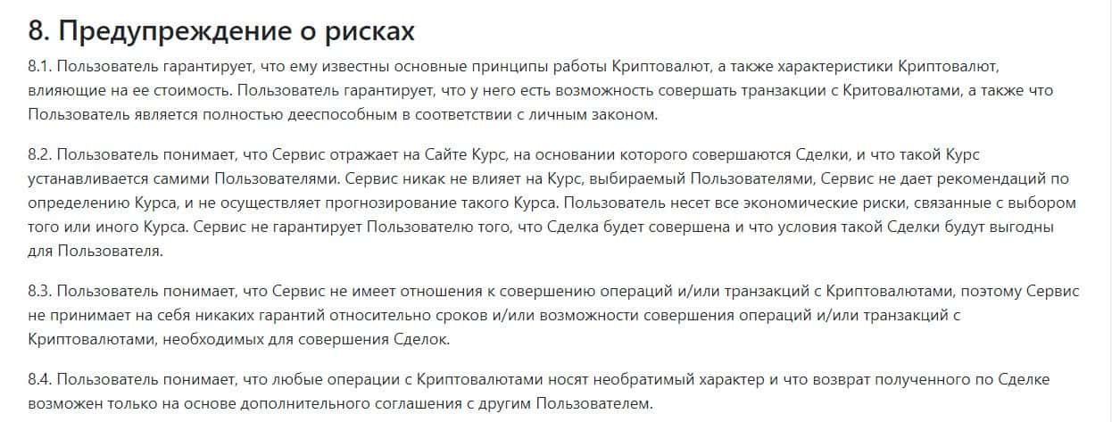 Раздел 8 предупреждает клиентов о том, что криптовалюта является высоковолатильным инструментом, поэтому люди должны осознавать все риски, связанные с этими активами.