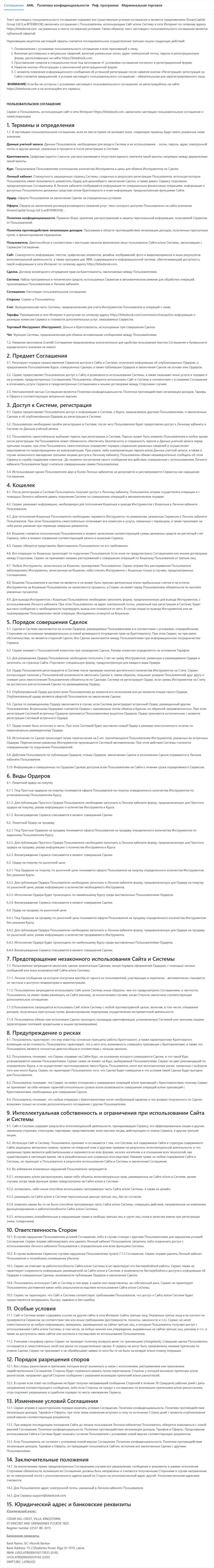 Клиентское соглашение криптобиржи Битекс Бук