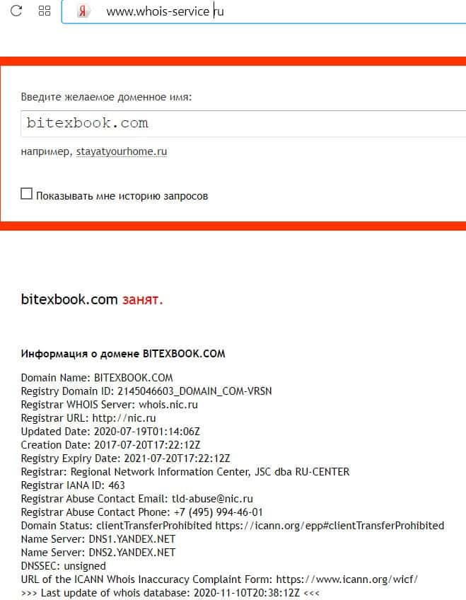 - Кому принадлежит доменное имя сайта bitexbook com?