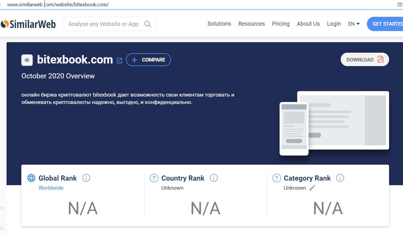 Сервис проверки компаний на посещаемость в интернете не показывает никаких данных о домене сайта bitexbook com.