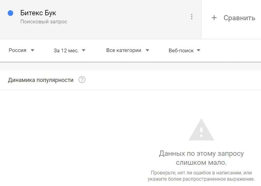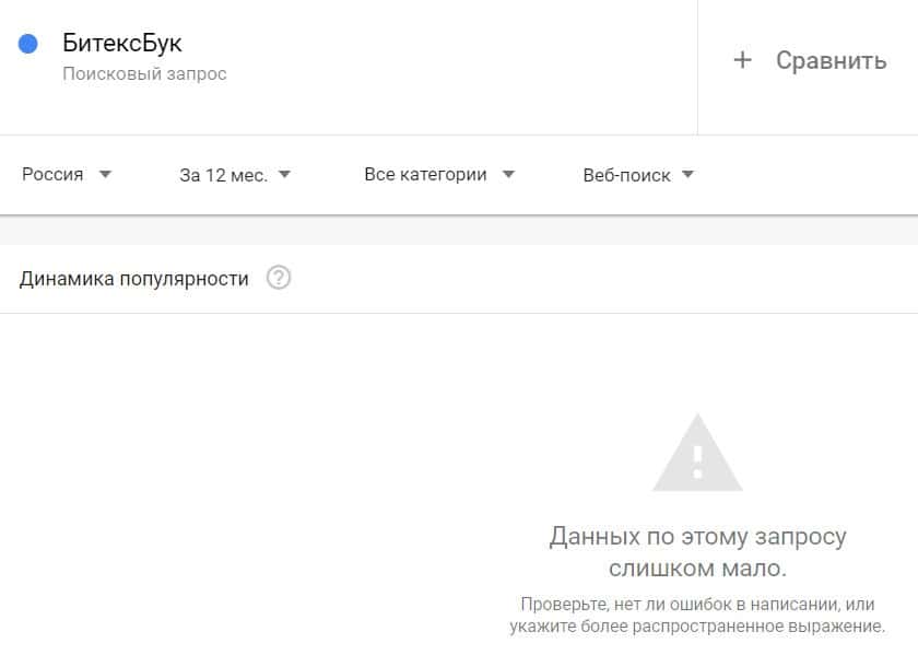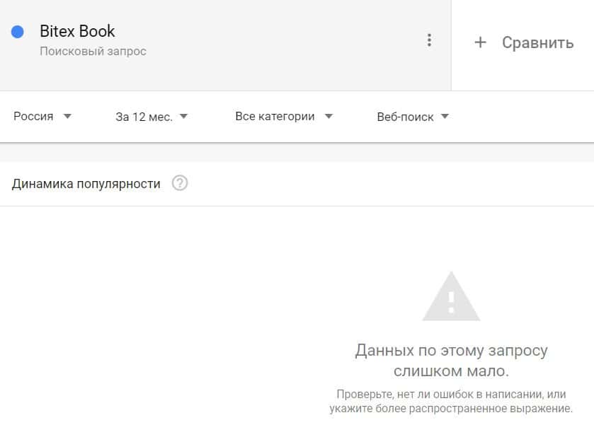 Если вбить то же название на английском языке, но с пробелами - "Bitex Book", результат поиска будет таким: очень мало данных.