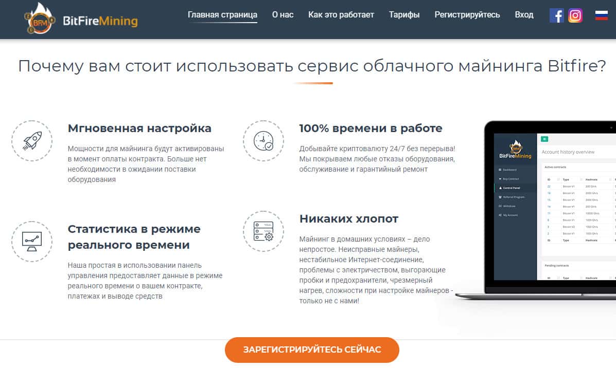 Битфаир Майнинг - очередные мошенники сети интернет, которые занимаются наглым разводом наивных пользователей сети интернет под довольно банальным предлогом майнинга криптовалюты, в ходе которого жулики Bitfire-Mining оперативно кидают на деньги своих клиентов. В связи с этим иметь дело и сотрудничать с шулерами Битфаир Майнинг не рекомендуем !!!