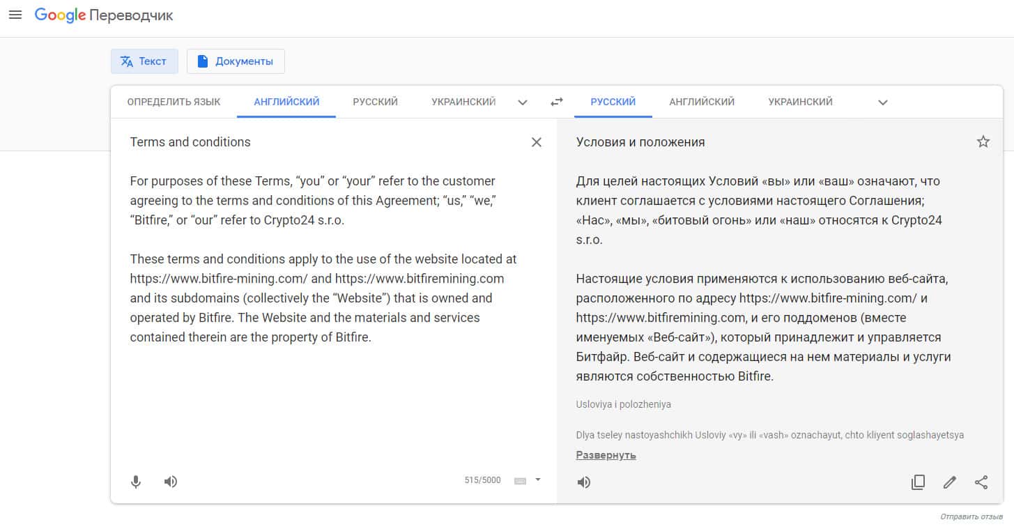 Перечень условий клиентского соглашения лохотрона Битфаир Майнинг