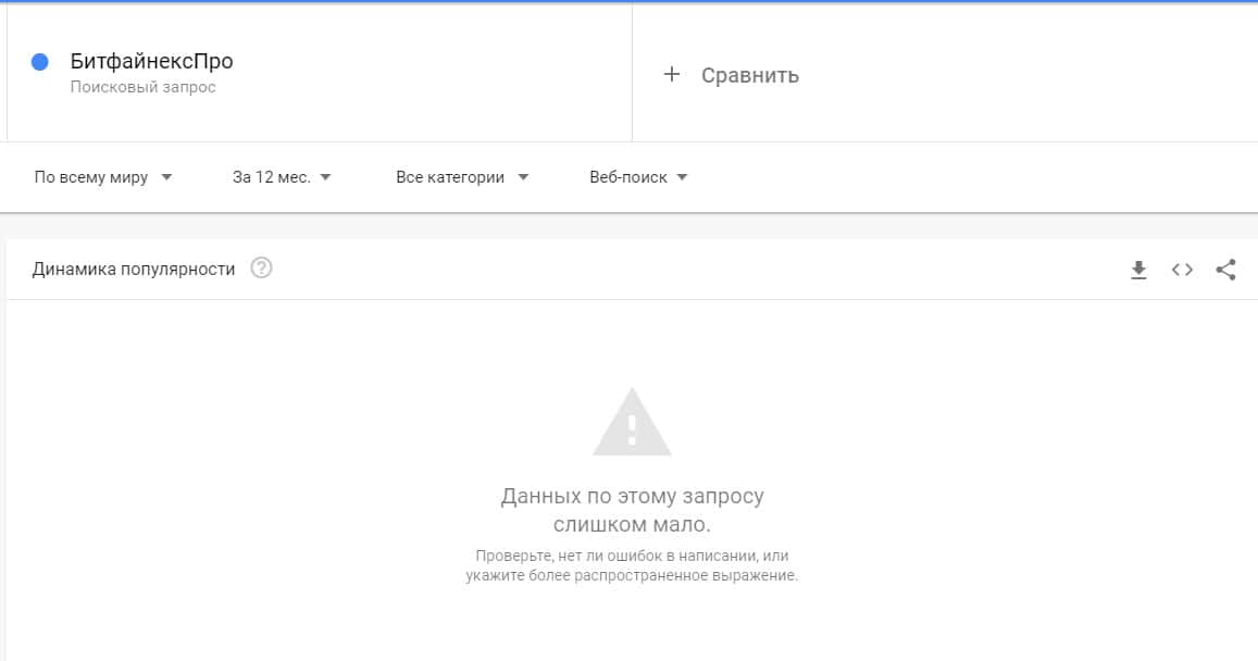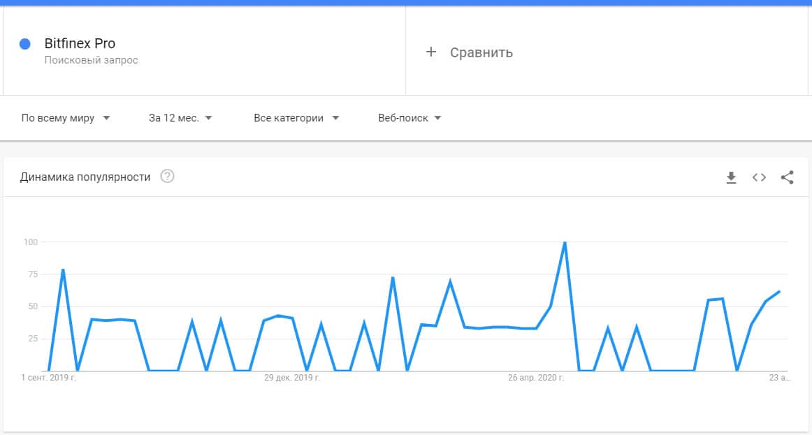 По поводу запроса бренда "BitfinexPro", то здесь стоит отметить, что за последние месяцы они не набрали популярность, что показывают данные из Гугл Трендс.