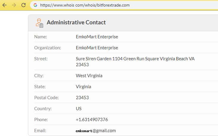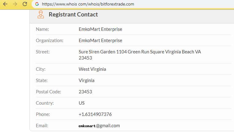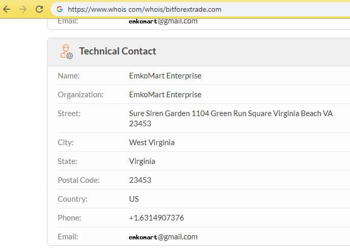 Остатки на whois com о наглых мошенниках BitForexTrade и их подвальной деятельности