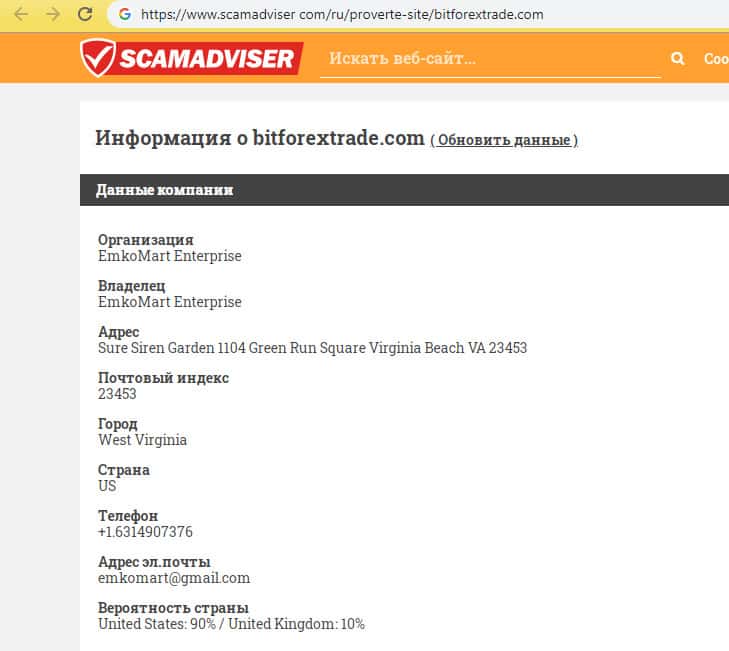 Далее также ведется речь о контактах соскамленной организации БитФорекс Трейд, но уже представлена информация о регистрации, по которой видно, что это была оффшорная компания. Поэтому понятно, почему она соскамилась, дабы снять всю ответственность из-за отсутствия лицензии и других документов.