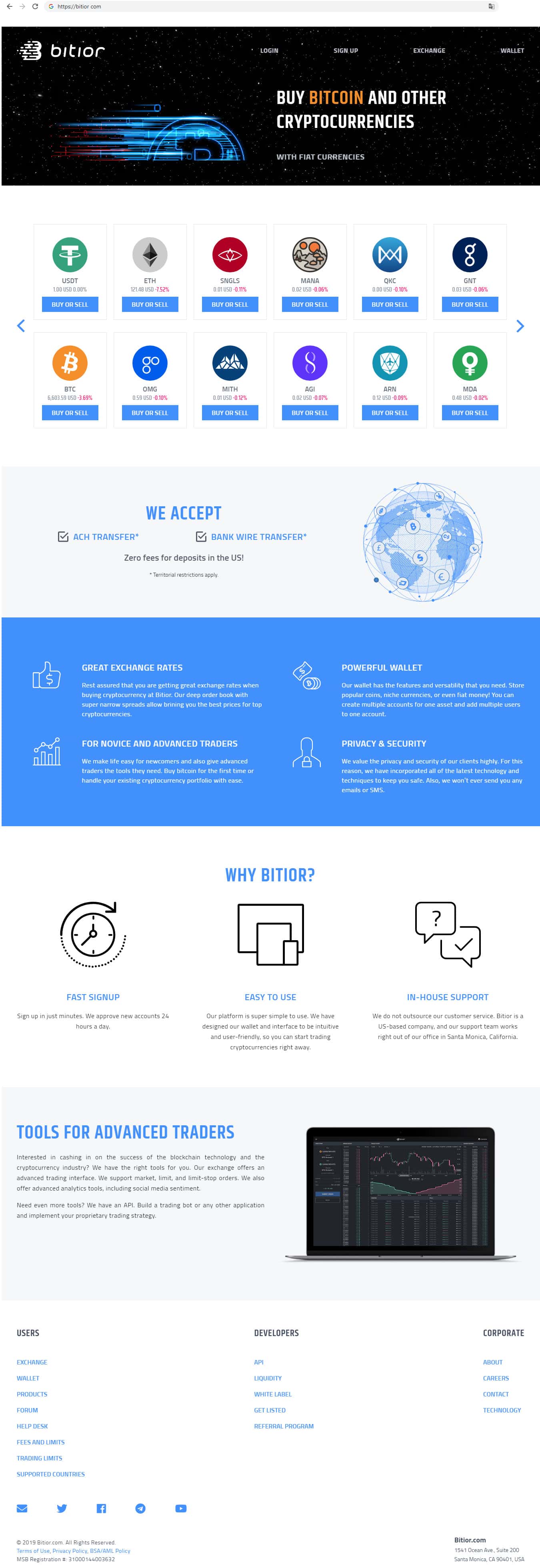 Сам Битиор представляет из себя криптовалютную биржу со всеми последующими вытекающими. Они предлагают "лучшую" во всех классах скорость в исполнении сделок и дальнейшую потерю денег своим клиентам. Битиор обещают клиентам осуществление депозитов и вывод средств в следующих валютах :