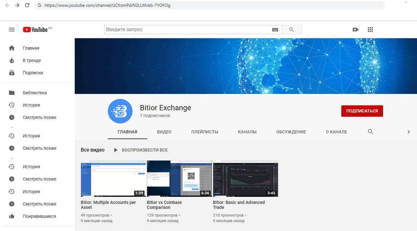 Так же аферисты Bitior завели канал на видеохостинге YouTube. Там они выложили 3 видео о работе своей компании, и якобы учат в них зарабатывать. Но интересен этот канал всего 7 людям, и скорее всего это сами разработчики. Компания изо всех сил старается казаться серьёзной организацией, но увы...