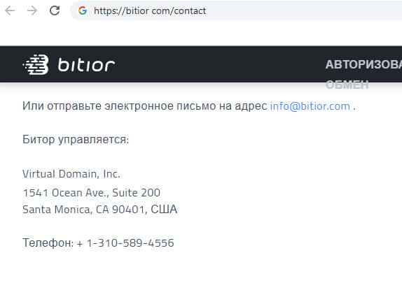 Битиор предоставил свои контактные данные для того, что бы пользователи могли связаться с работниками компании, и задать им интересующие вопросы, или что то предложить, ну или высказать своё недевольство о том, куда пропали их деньги. Контактная информация предоставлена мошенниками Bitior: