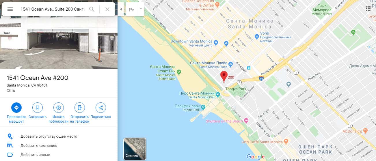 - адрес 1541 Ocean Ave., Suite 200 Santa Monica, CA 90401, США