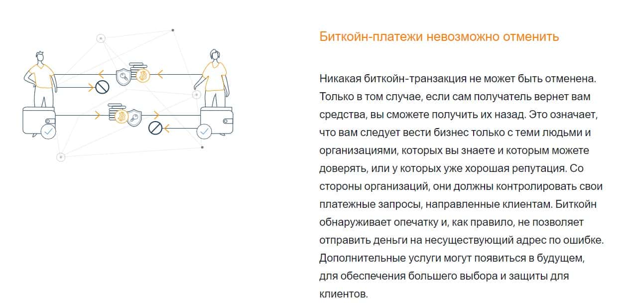 В данной сфере можно делать всё, что угодно, чем и пользуется компания аферистов Биткоин. Предлагая якобы безопасный вид оплаты, они умалчивают небезопасности данных процедур и не возможности отмены ваших операций если вы какимто образом ошиблись. Тем самым подвергая вас риску потери ваших средств.