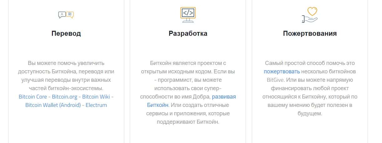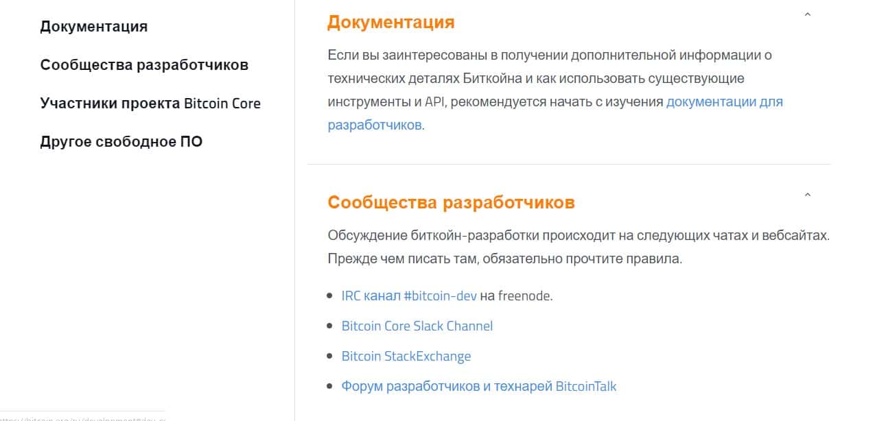 Возникает рад вопросов связанных с данным разделом, так как всё, что там написано так это то, что представляет из себя биткоин а не как его начать разрабатывать и зарабатывать на нём. Как может помочь информация о транзакциях и хранении биткоин, тоже остаётся загадкой. Не доверяйте мошенникам Bitcoin Org, всё, что они пишут это лож.