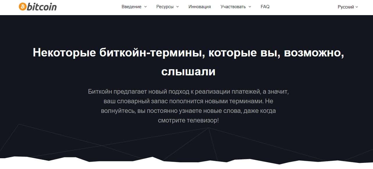 Глупое обучение терминам от лохотрона Bitcoin Org