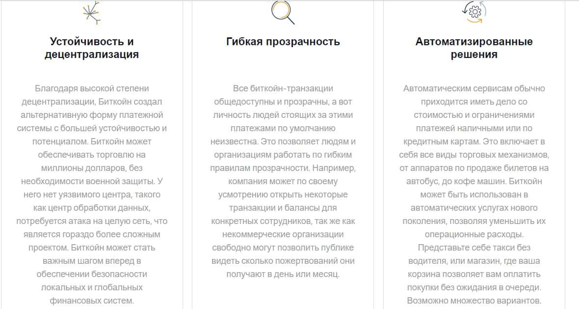 В данном разделе, да и во всех прошлых разделов аферисты Биткоин утверждают то, что Биткоин самая инновационная и дорогая валюта которая только есть в мире. Что с помощью неё можно делать всё, вплоть до оплаты всего чего вам угодно.