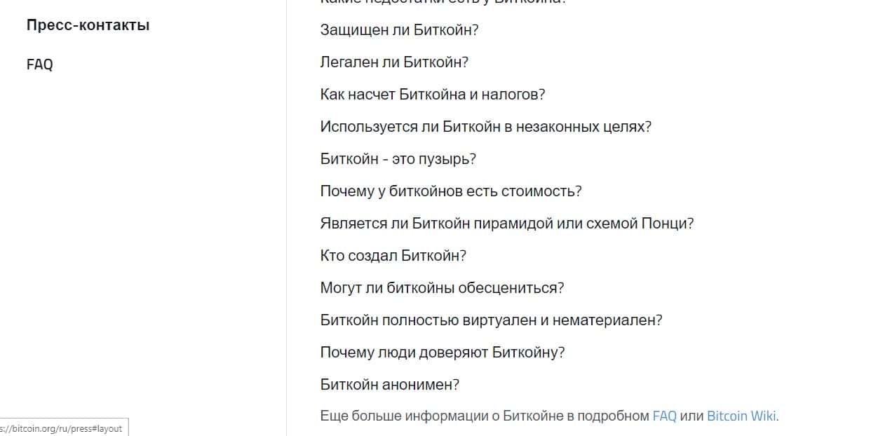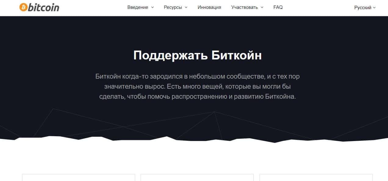 Информационный раздел про биткоины у лохотрона Bitcoin Org