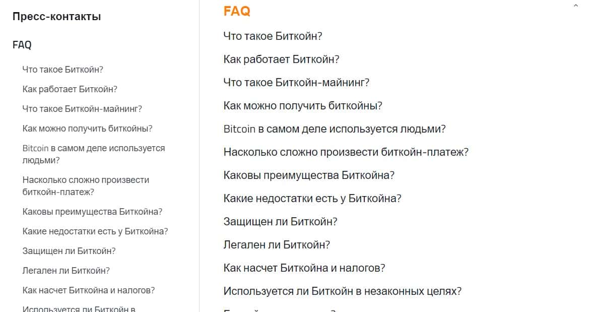 - Лживый раздел сайта о самой структуре мошенников Биткоин