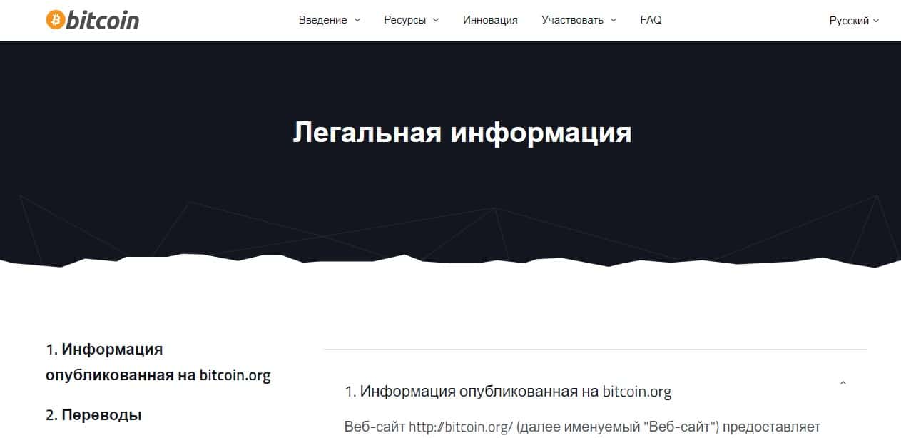 Раздел с глупым название легальная информация от аферистов Bitcoin Org