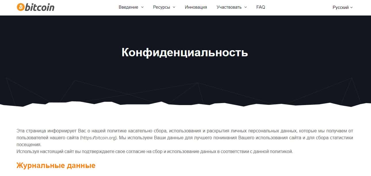 - Довольно примитивная политика конфиденциальности от подвальной кухни Bitcoin Org