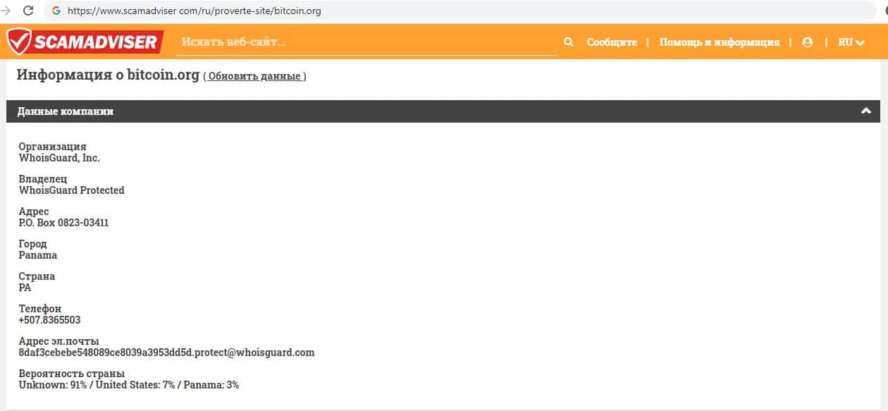 В данной сфере достаточно лохотронщиков и обманщиков. Но это не остановило мошенников Bitcoin Org и они внесли свою долю в данные обманы. Таким образом во избежании ответственности, аферисты Биткоин не предоставляют ни какой информации о себе а особенно о месте регистрации компании.