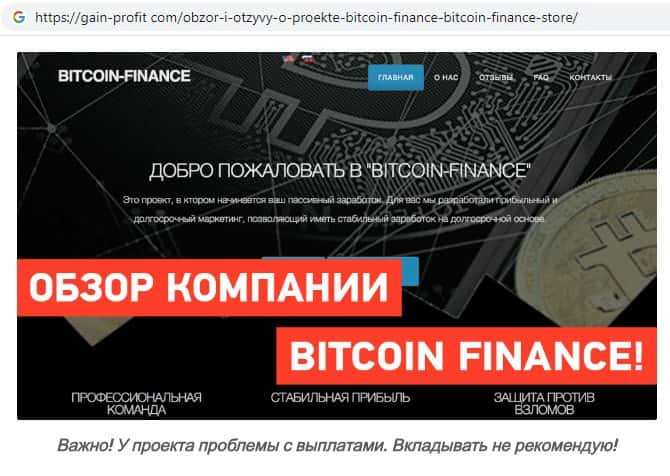 - Информация об инвестиционном лохотроне Bitcoin Finance