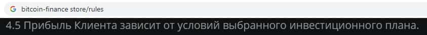 Лохотронщики Bitcoin-finance store конкретного юридического лица с формой собственности не указывают, а вместо этого указали лишь часть домена своего сайта.