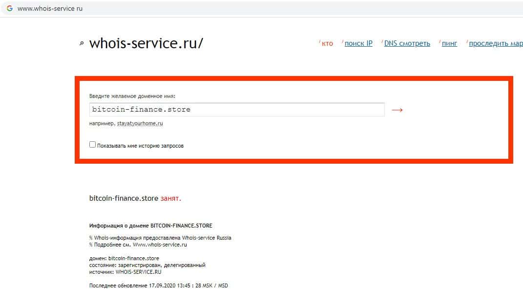 Сервис whois-service ru не может найти данные о владельце домена сайта мошеннической организации Биткоин Финанс, доверять сайту данной скам-конторы нельзя.