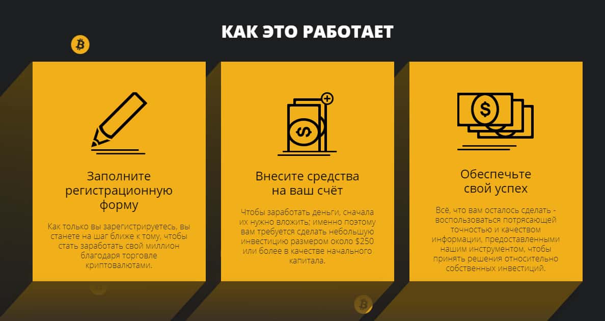 Далее на подвальном сайте у проходимцев БитКоин Ньюс Трейдер следует довольно сомнительный раздел, в котором аферисты Bitcoin News Trader вешают лапшу на уши своей клиентуре о своей очередной "чудо" программе, которая по словам жулья БитКоин Ньюс Трейдер сделает любого миллионером, что вы наглядно можете увидеть на изображении ниже.
