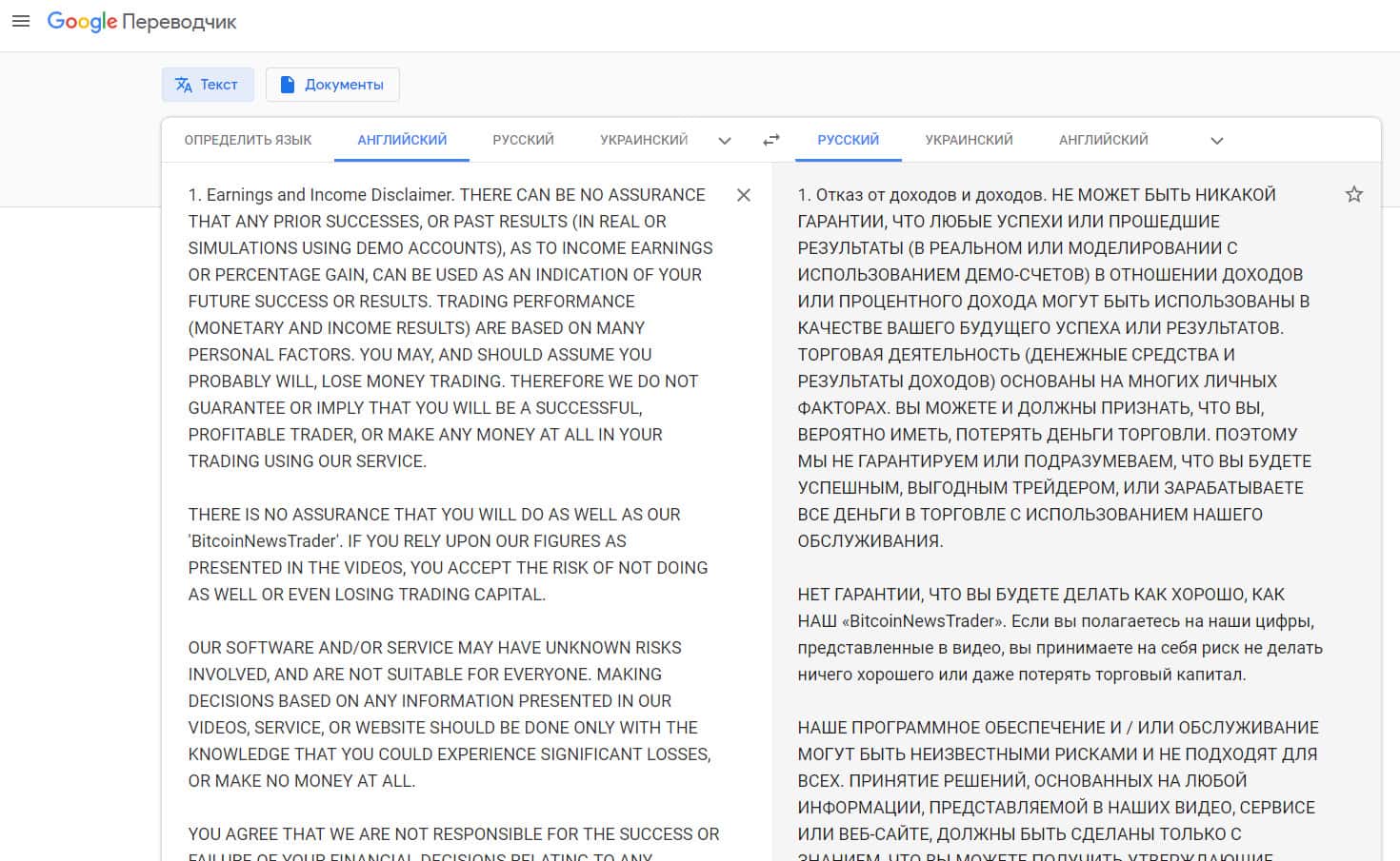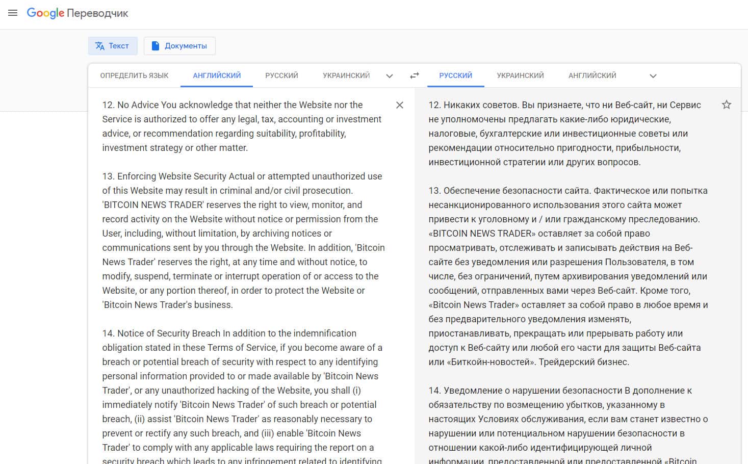 - Перечень условий клиентского соглашения лохотрона Bitcoin News Trader