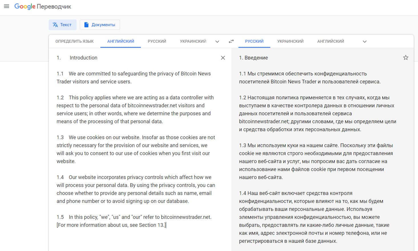 Условия политики конфиденциальности лохотрона БитКоин Ньюс Трейдер