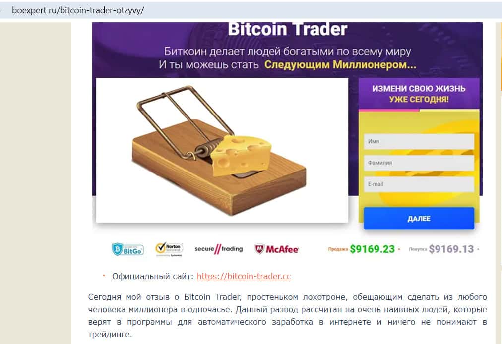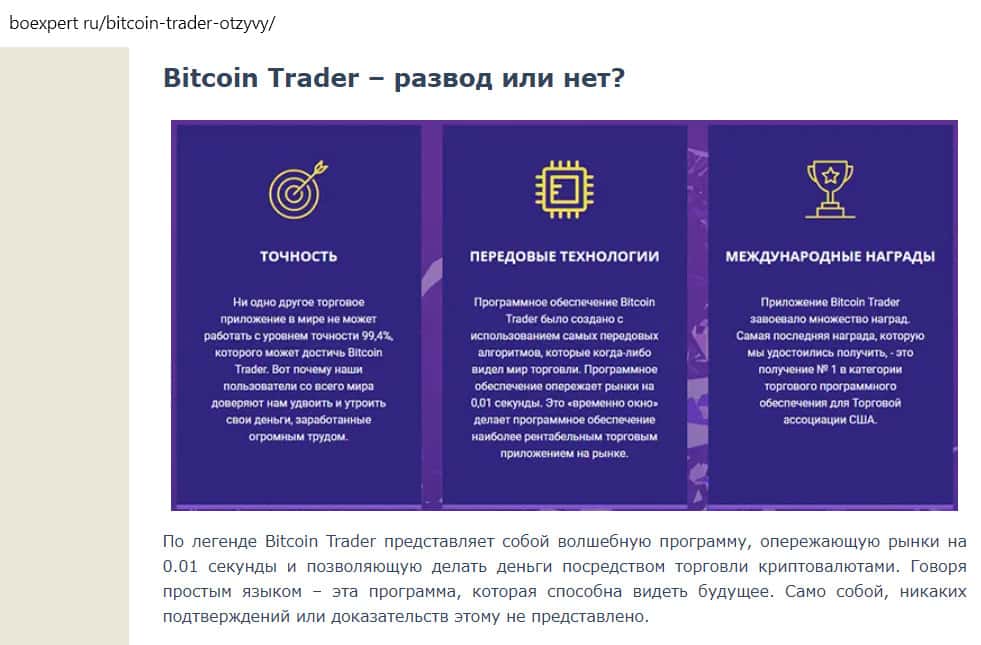 Разоблачительная статья о лохотроне Биткоин Трейдер на сайте Боэксперт