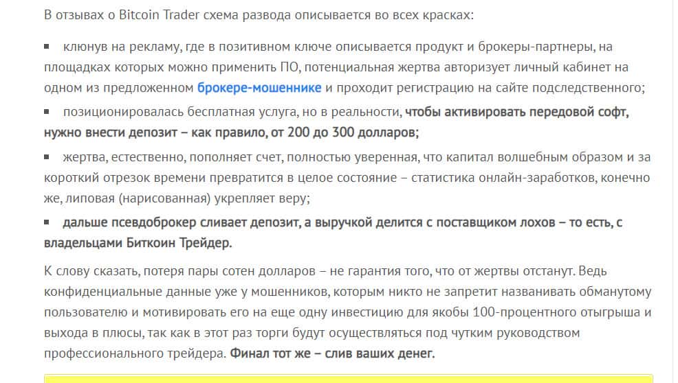Мнение автора статьи о лохотроне Биткоин Трейдер